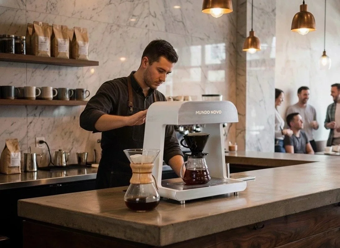 Our office and restaurant machines provide a simplified way to operate the machine, without compromising on the quality and ritual aspect of Pour-Over making. Your staff, whether in a restaurant or an office can brew coffee with a click of a button. These machines operate at 110VAC.