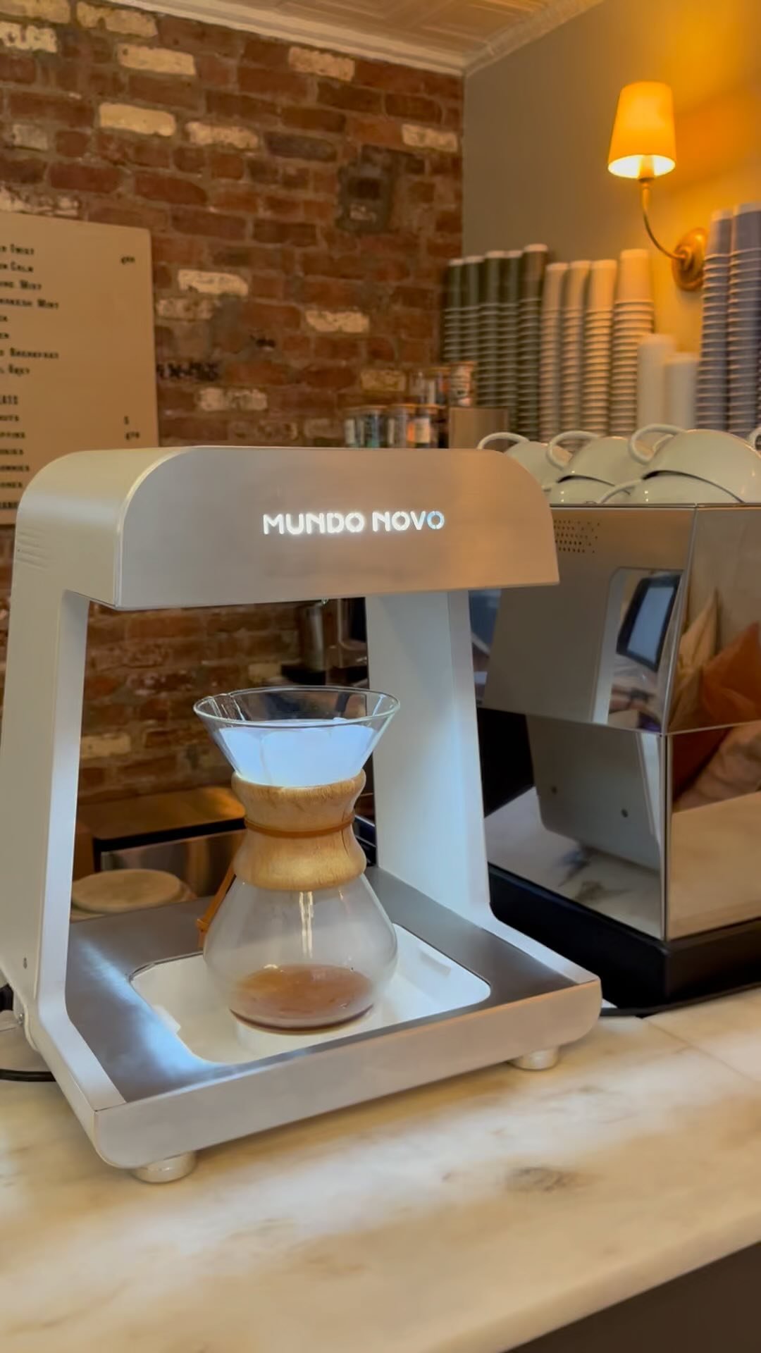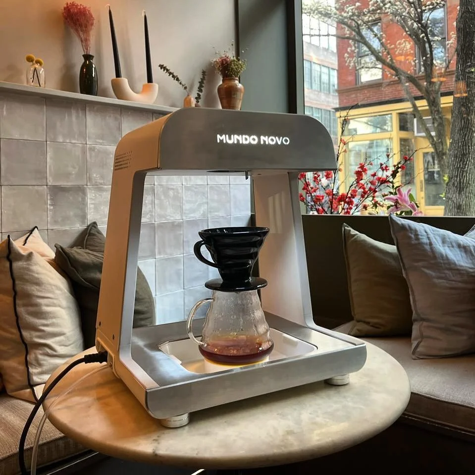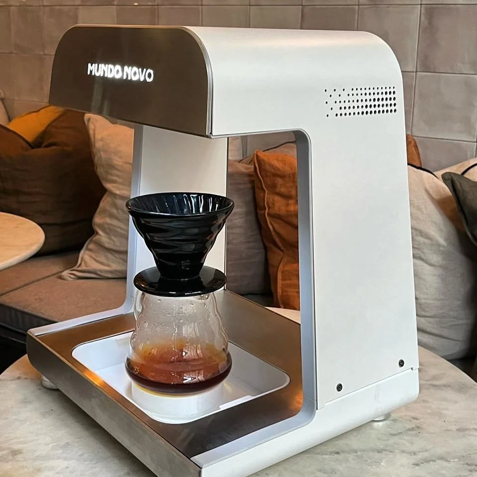 Mundo Novo’s patented spiral-sprinkle extraction system is engineered to deliver exceptional extraction through controlled agitation and a spiral pouring pattern that evenly saturates the entire coffee bed. Combined with a soft, gentle flow rate, the system minimizes channeling while ensuring uniform coverage of the grounds.